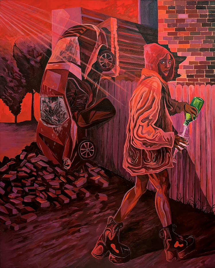 Baker’s energy is conveyed through chaotic interwoven layers, revealing compositions that address the promise of tomorrow while confronting the flaws of the present. His works challenge boundaries and invite viewers to see beyond the immediate.