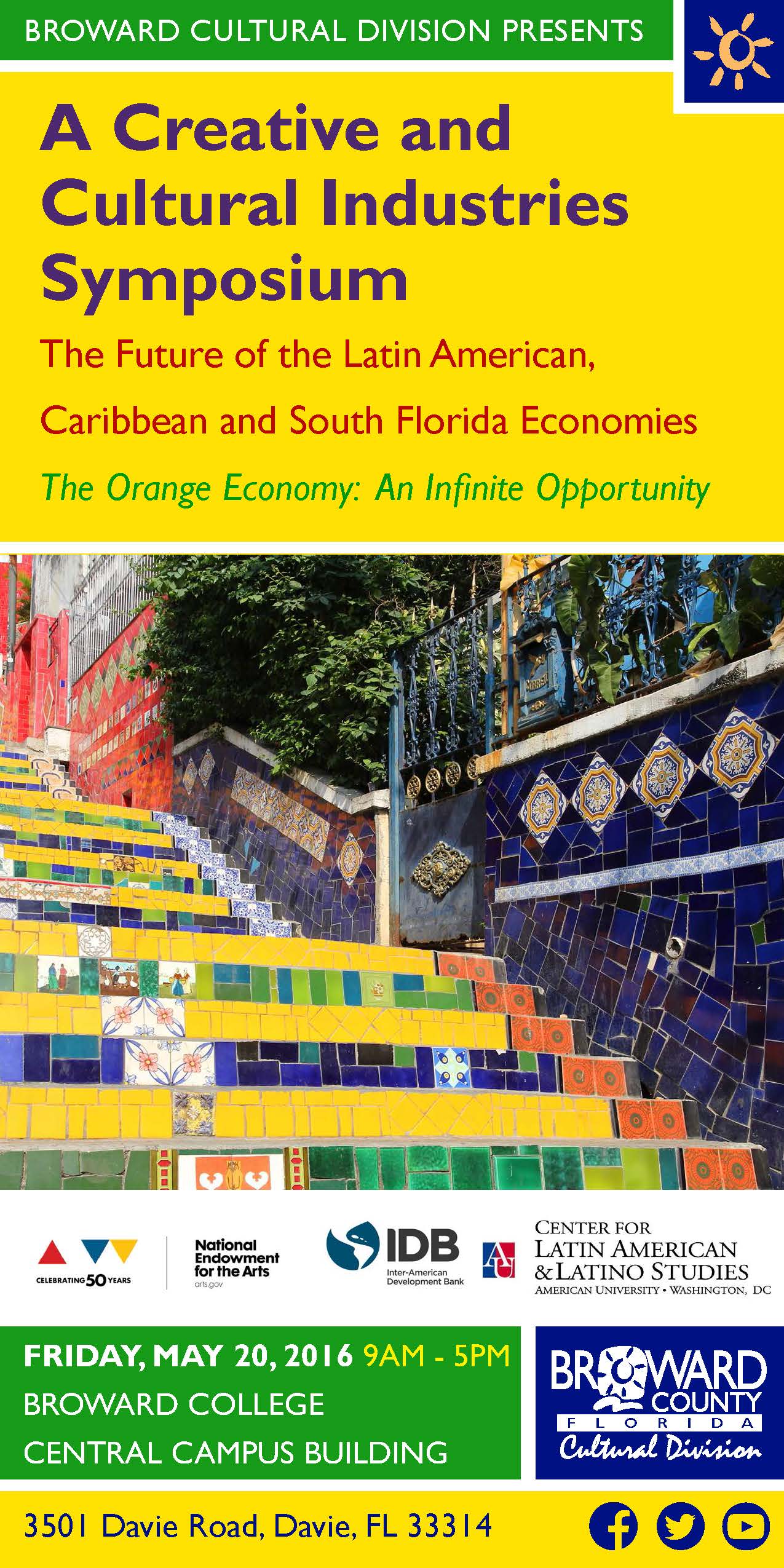 In November 2015, the Broward Cultural Division announced that it was one of 21 local arts agencies nationwide to receive a National Endowment for the Arts (NEA) Art Works grant to partner with CLALS on the next phase of this work, which supported supported a second public forum in May 2016 dedicated to the same topic, and hosted by Broward County, together with the University of Florida and Broward College, in which researchers from CLALS and AU's Arts Management Program were again featured. CLALS continues to work with Broward's Cultural Division to assist the county with next steps in implementing its creative economy vision.