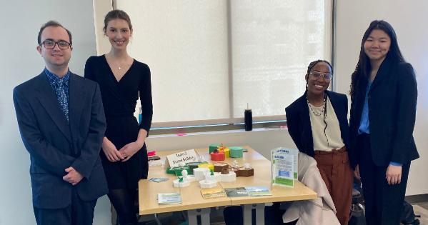 The winning team—Madeleine Danzberger, CAS/BA ’23, Joseph Rogero, Kogod/BS ’23, Kennedy Smith, CAS/BS ’25, and Rood—constructed a three-player board game, Biome Builder, which teaches elementary schoolers about biodiversity. The game—which focuses on UN goal 14 about life on land, protecting terrestrial ecosystems, and stopping biodiversity loss—features three biomes and five ecosystems and includes hexagonal pieces and action cards.