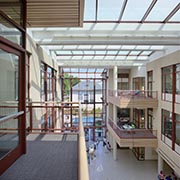 SIS is housed in a 70,000 square-foot, LEED Gold-certified building, designed by renowned “green” architect William McDonough. McDonough developed a building that supports key elements of human and environmental health, including water savings, materials selection, and indoor environmental quality. The building features natural light, nontoxic materials, and climate controls that ensure the quality of indoor air.