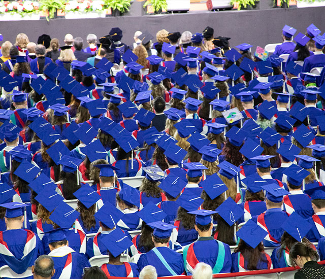 Office of the Vice President of Student Affairs 4400 Massachusetts Avenue NW Washington, DC 20016-8127 United StatesNew Student Convocation is AU's official welcoming ceremony for new students, the first step in their journey to become proud AU Eagles. This cherished tradition not only welcomes students into the AU community but also instills a deep sense of pride that will accompany them throughout their time here. Conovcation and graduation are the bookends of the AU student experience. In fact, these two remarkable celebrations are the only occasions when the entire class gathers as one, strengthening the bonds of school pride and camaraderie that define our AU community. As part of this storied tradition, new Eagles proudly rub the talon of the Eagle statue, located outside of Bender Arena, as they enter Convocation to the sound of bagpipes. This symbolic gesture reflects their commitment to the Eagle community and is believed to bring good luck throughout the academic year.